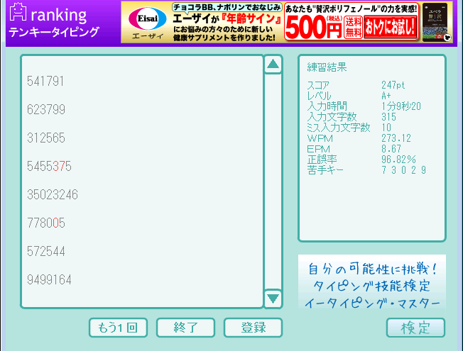 <打鍵速度> 分速429.7打(秒速7.16打)
