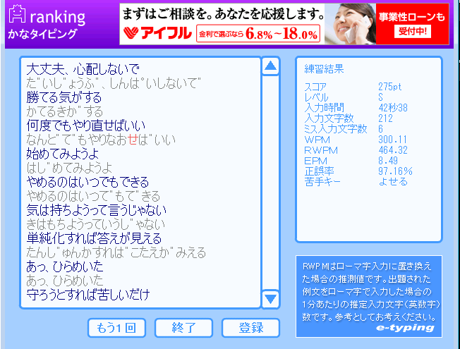 タイピング内容は言うまでもなく素晴らしい。特に憲法の安定感がすごい。