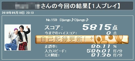<打鍵速度> 分速908.5打(秒速15.14打)