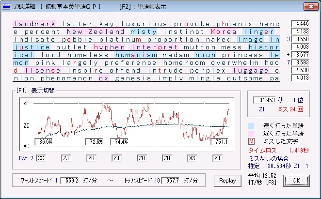 <打鍵速度> 分速748.4打(秒速12.47打)
