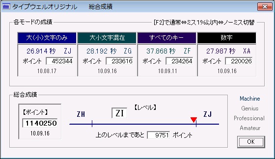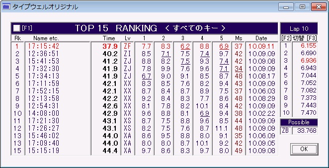 <最高記録> 32.069秒(レベルZJ)