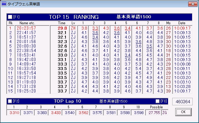 <打鍵速度> 分速456.8打(秒速7.61打)