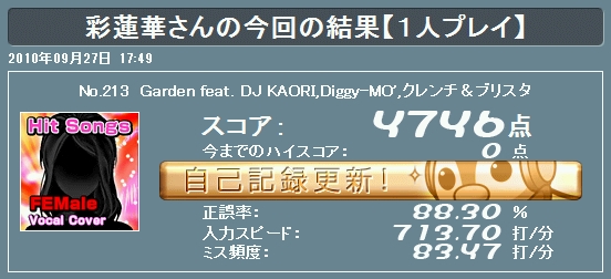 <打鍵速度> 分速425.7打(秒速7.09打)