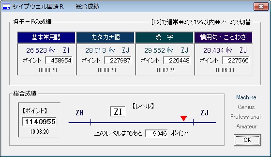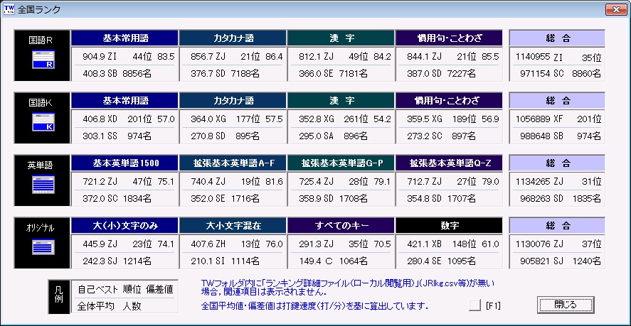 つーことで、今日はTypewell4科目(基本,AF,QZ,すべキー)更新。E総合XX→ZJ,O総合XX→ZJ!