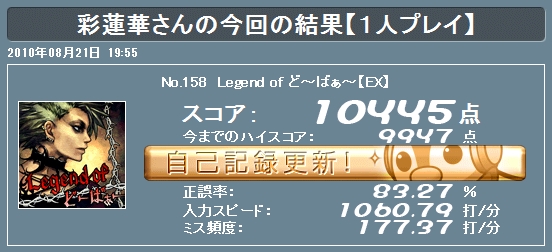 R常用ESC無し10連打ち切り : MAX29.3[23位] AVE31.4 34.1miss 平均ミスなんとかしろよ・・・