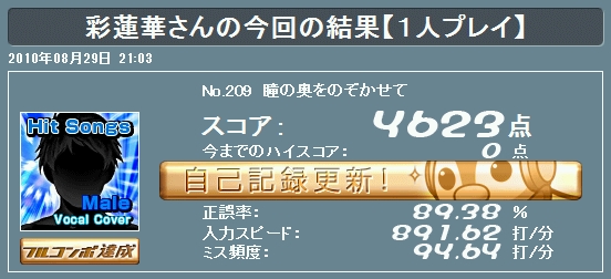 <打鍵速度> 分速291.3打(秒速4.86打)