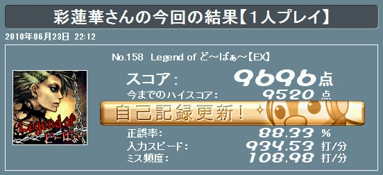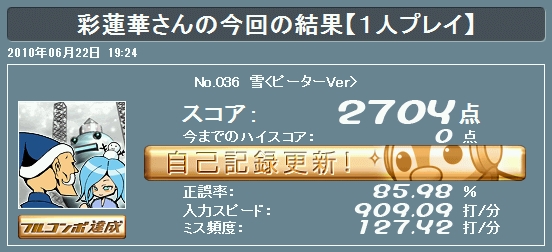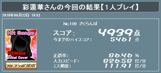 歌詞ありでも初見で物凄い速さを出してくるあたりが流石といったところ。