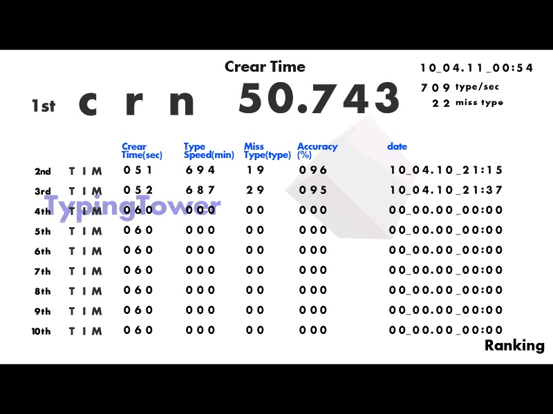 <最高記録> 51.568秒(レベルXI)