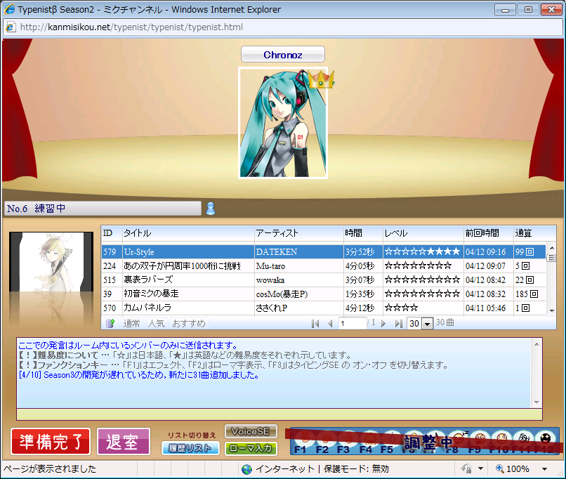 久しぶりに歌謡タイピング劇場なぞプレイしてみる。