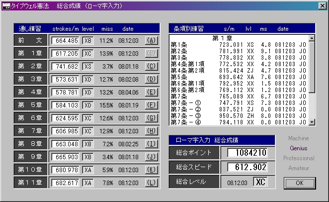 初期化したんでその前の成績も含めると