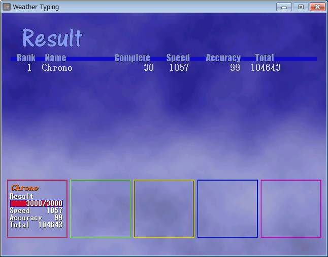 休憩だ!ってことで久しぶりにWeatherTypingを打とうかなーと起動して一発目。