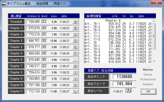 条項別はほぼ詰めて、WJOはZJ到達。ZIは怪しい。